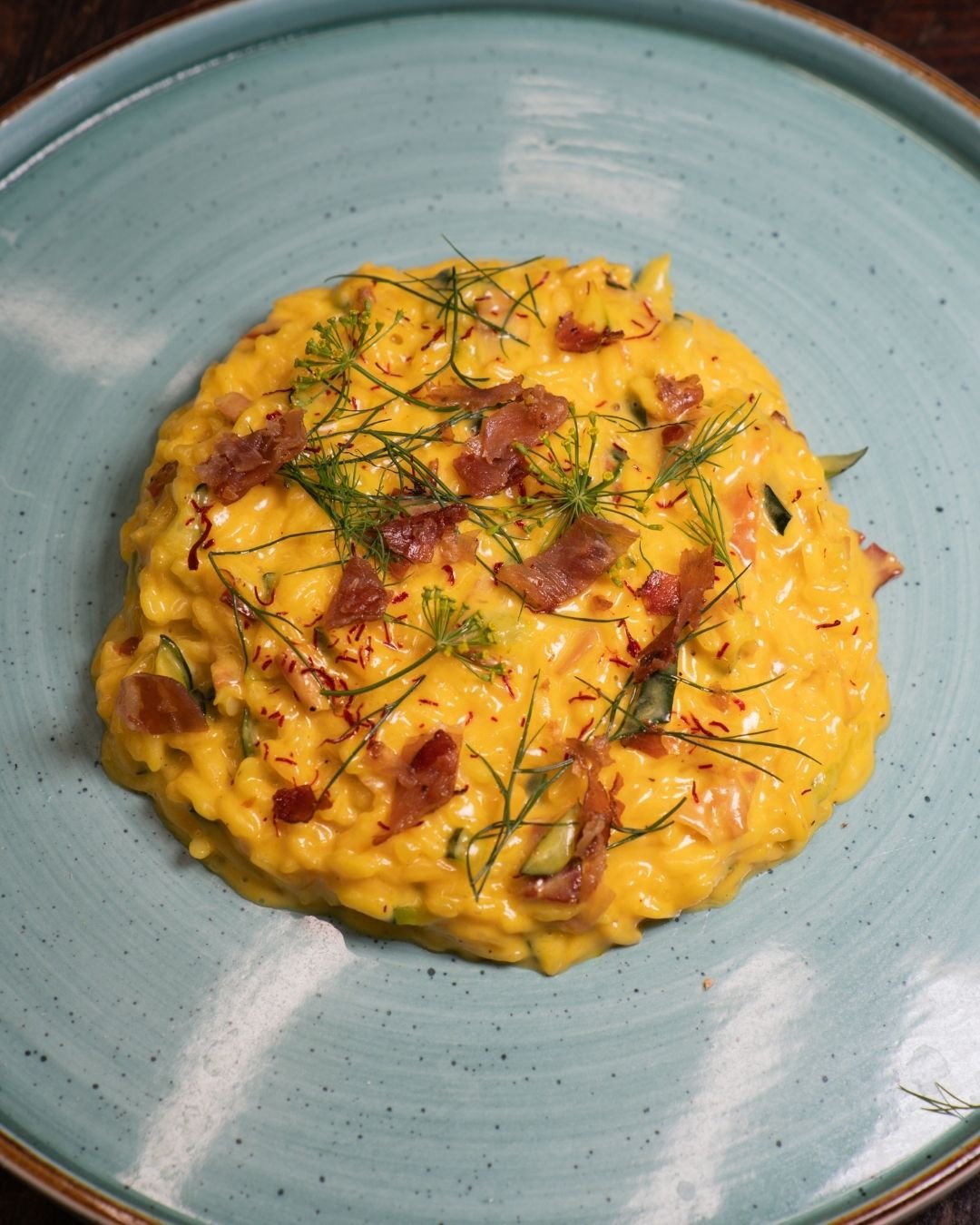 Risotto venere con bisque di gamberi, stracciatella, tartare di gambero rosso e pistacchio di Bronte